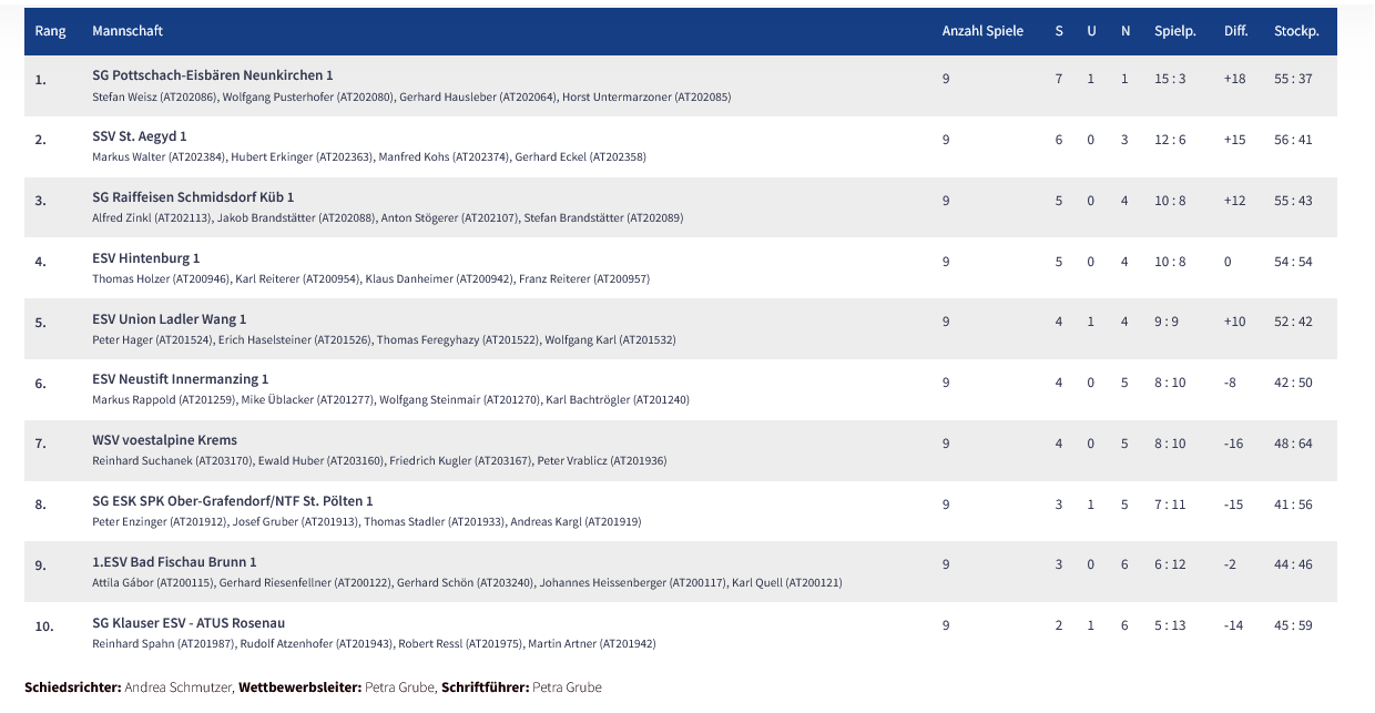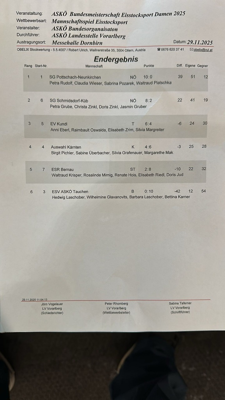 Bundesliga Damen in Ternitz - die cm waren heute leider gegen uns und das Glück hat vermutlich auch grad woanders mehr zu tun gehabt. Platz 6 ist es geworden, das könnte gerade noch reichen zum Erhalt, morgen wissen wir mehr.